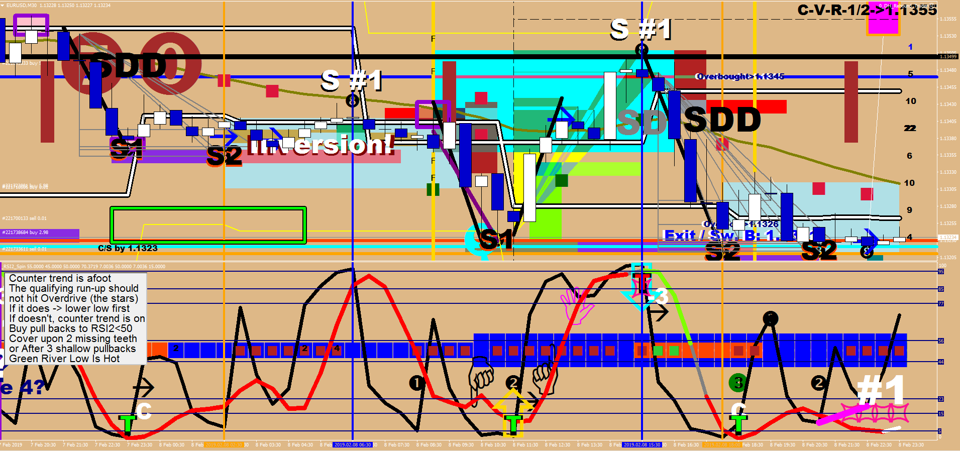 The first RSI2>82 is a sell after a hammer & spanner on the red (RED SELL)