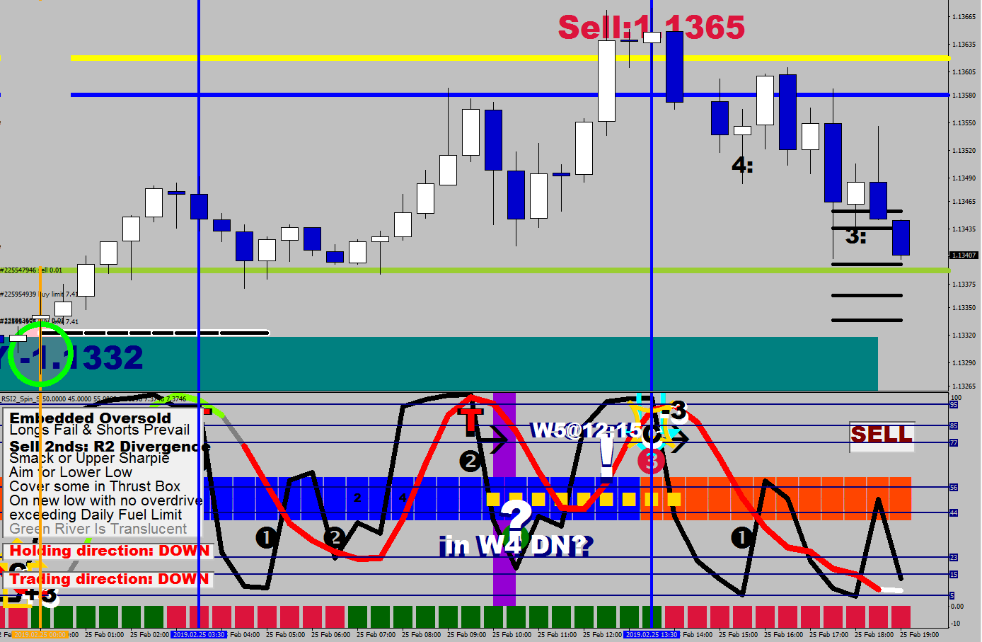 Little noise, nothing serious. Opening move down, 3 maggots lower – the sudden oversold was bought. The head is where the black “3” is at, we are pushing back into Wave 1 to the downside, Skid Rock time…