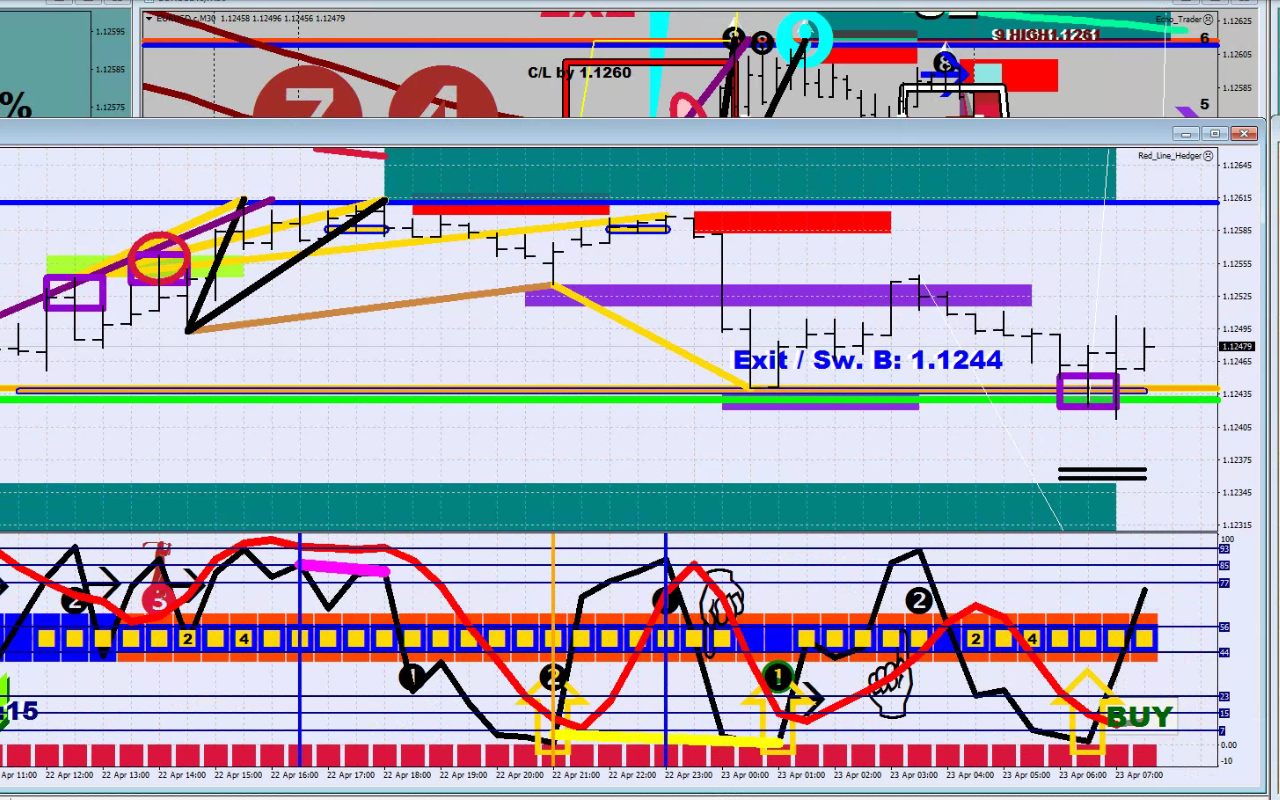 As a remark, there was a double pump at the top, check the two brown lines: sell level was/is the inner 8 @ 1.2387 and the stop could be put just beyond the outer one, 1.2396. It is a working trade. Maybe you should get my 88 Routine.