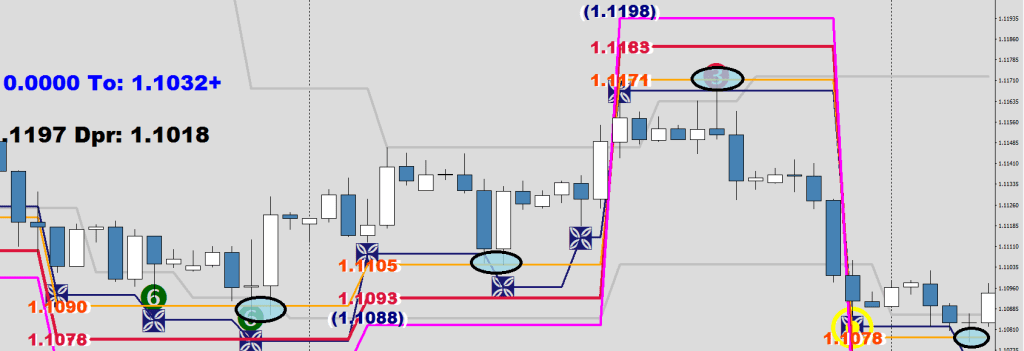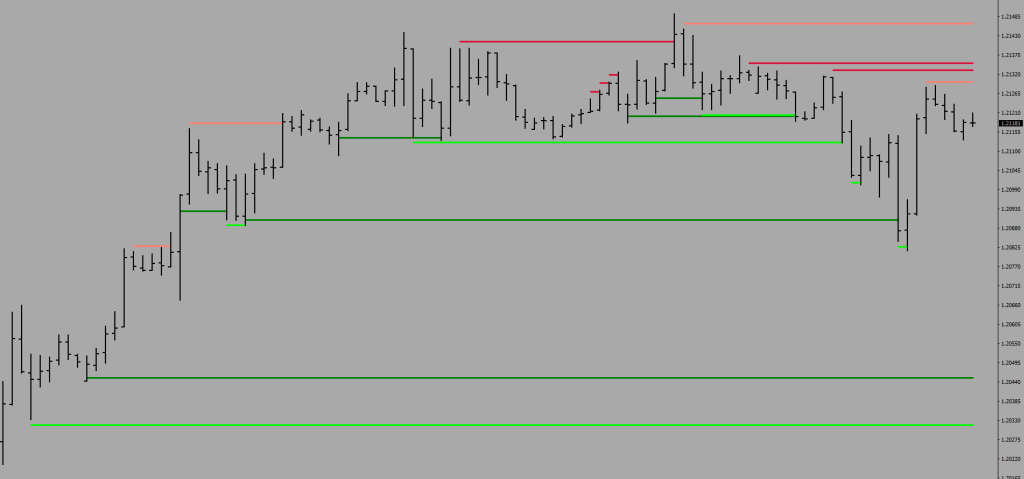 The Swiss-Army Knife version of Nick (called Rhodes) has auto level plots: combined daily exhaustion levels and hourly tough cookies and some recent swing low / high for good measure & highlight on those that are the closest to the 3-day ATR from the last consolidation weight.