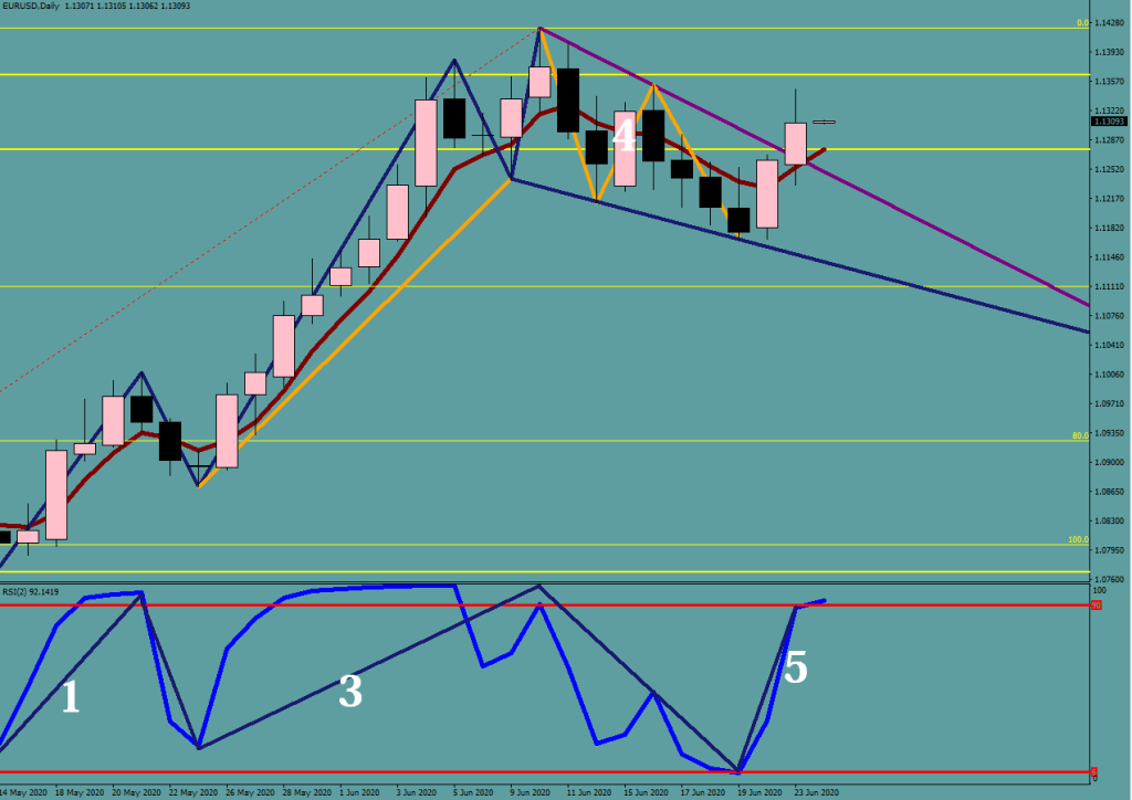 I’m having a hard time approving of the last move up to 1.25 as a wave 5. The wave 4, if it has not ended yet, is the weirdest correction I have ever encountered. I would think the price is going to play catch up to the bottom of the channel, by when it would be over the recent top.