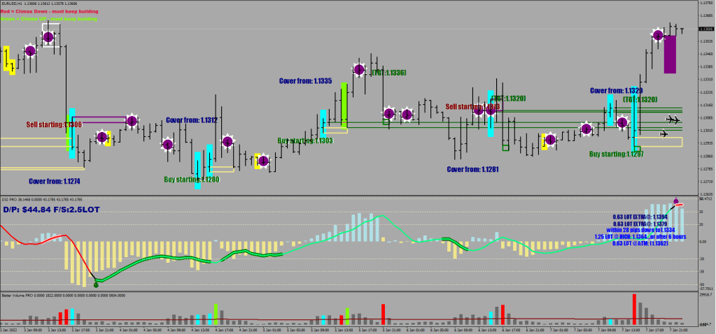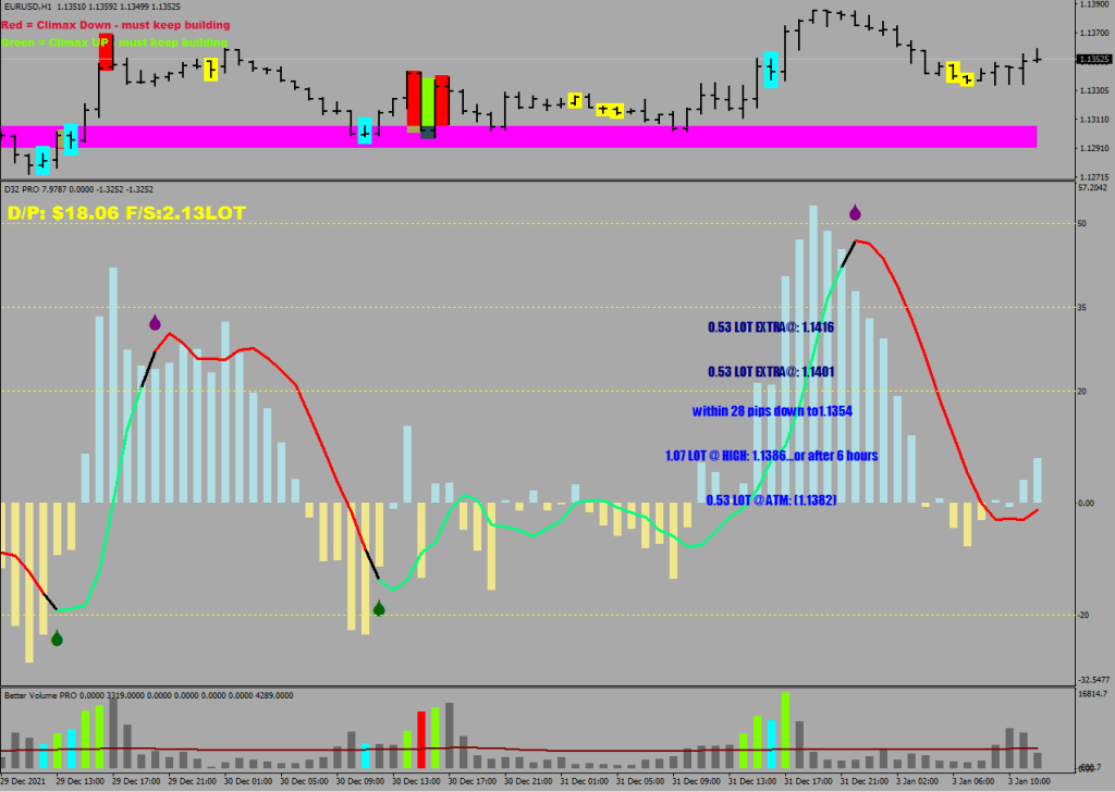 D32PRO V1.4 is conscious of liquidity breaks, has added Supertrend filter as well as negative/positive splitter => the accumulation highlights on the chameleon MA. Better Volume Chart Bars V1.1 received professional volume based reactive volume plays with entry and exit suggestions, real time support/ resistance & current engagement plots.