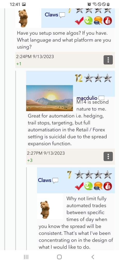 Heck, I could enlist several dozen auto trading routines (these with source also) for $25 and up.