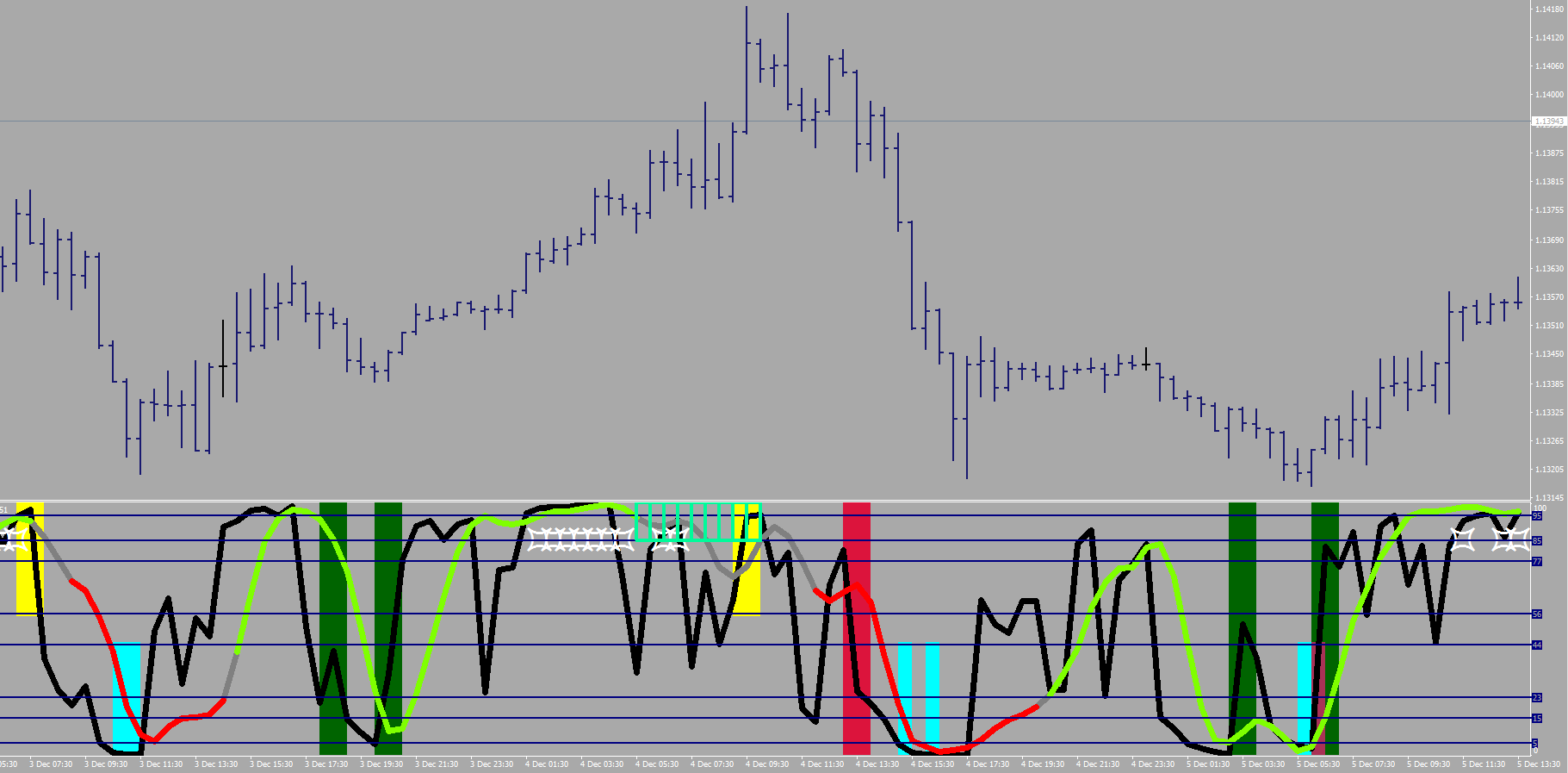 3b. Or the stochastic line changing to gray.