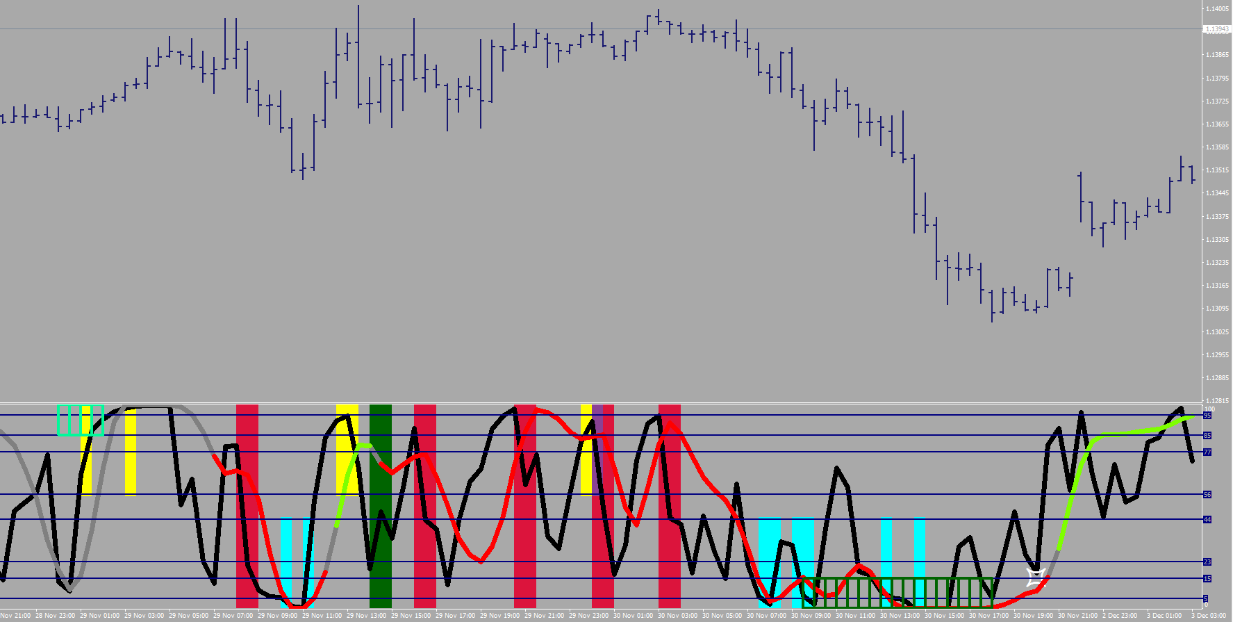 2b. Fine tune your entry with the RSI2 values (black line).
