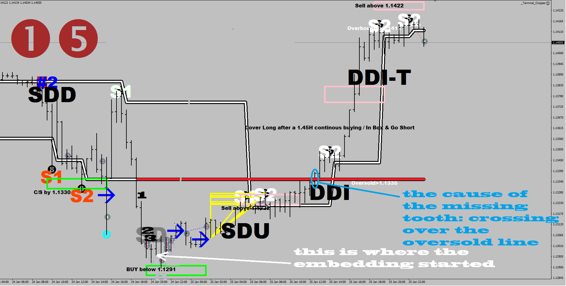 The one tooth missing is normally called “saving” that results in re-embedding. This does not apply for the current example, the one blank was merely signaling an open below and a close above the oversold neckline.