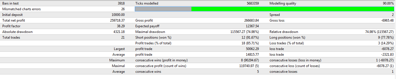 As for temporary draw downs, I am not at all worried, for I would be making on the opposite direction automatically by my Ratio Hedger initiating counter trades at different levels of draw downs starting from 15% (it would first slow down the equity draw down, then eventually reverse it). In the back test it is not possible to include other EAs.