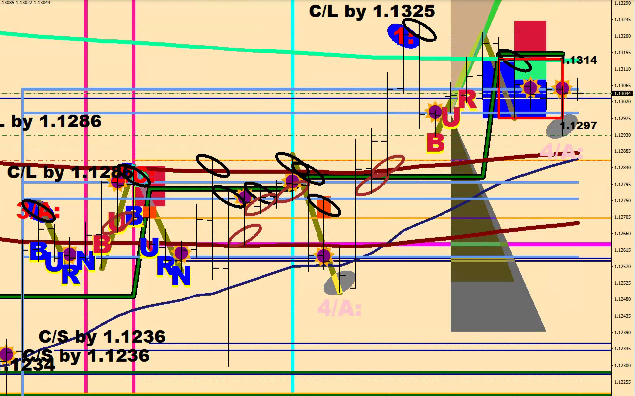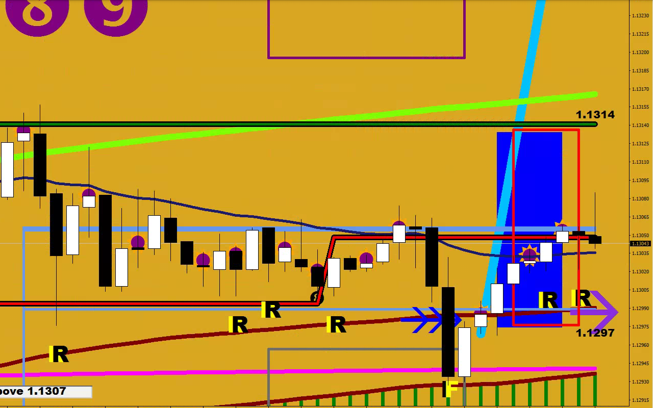 The run up from the Fake out of Mr. Maroon (also the spark zone) may be over with as soon as the 4H dojo gets faked out on the upside (1.1305-1.1313)