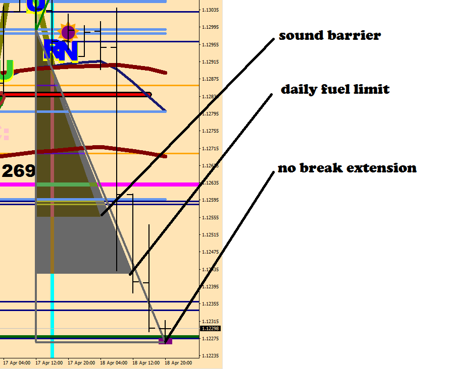 The sound barrier I referred to is the fluctuation size distance which is another plot of the same indicator – the white lines projecting the limitation of a move that does not mange to step outside of the fluctuation range (the box itself is from Fluctuation distance to Fluctuation maximum).