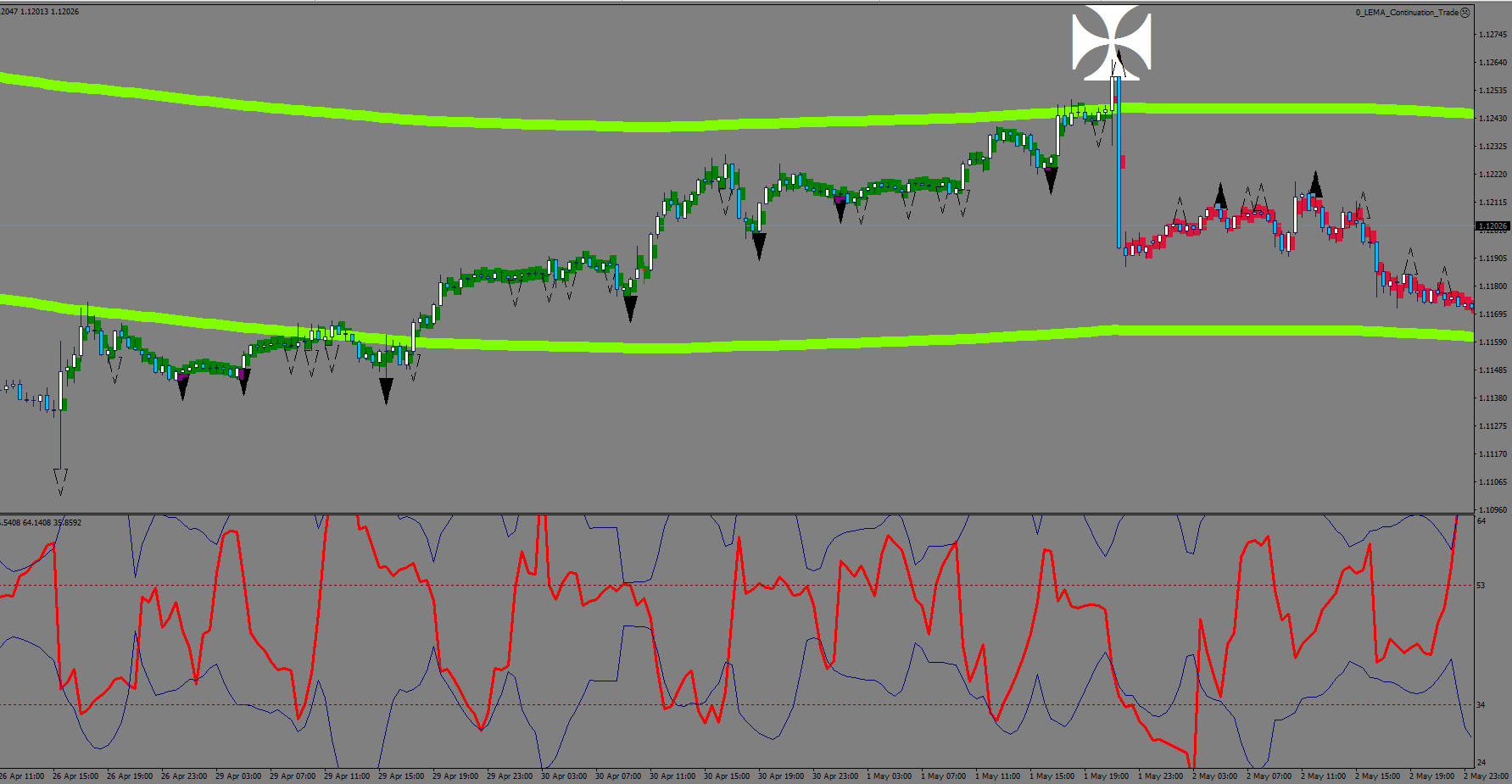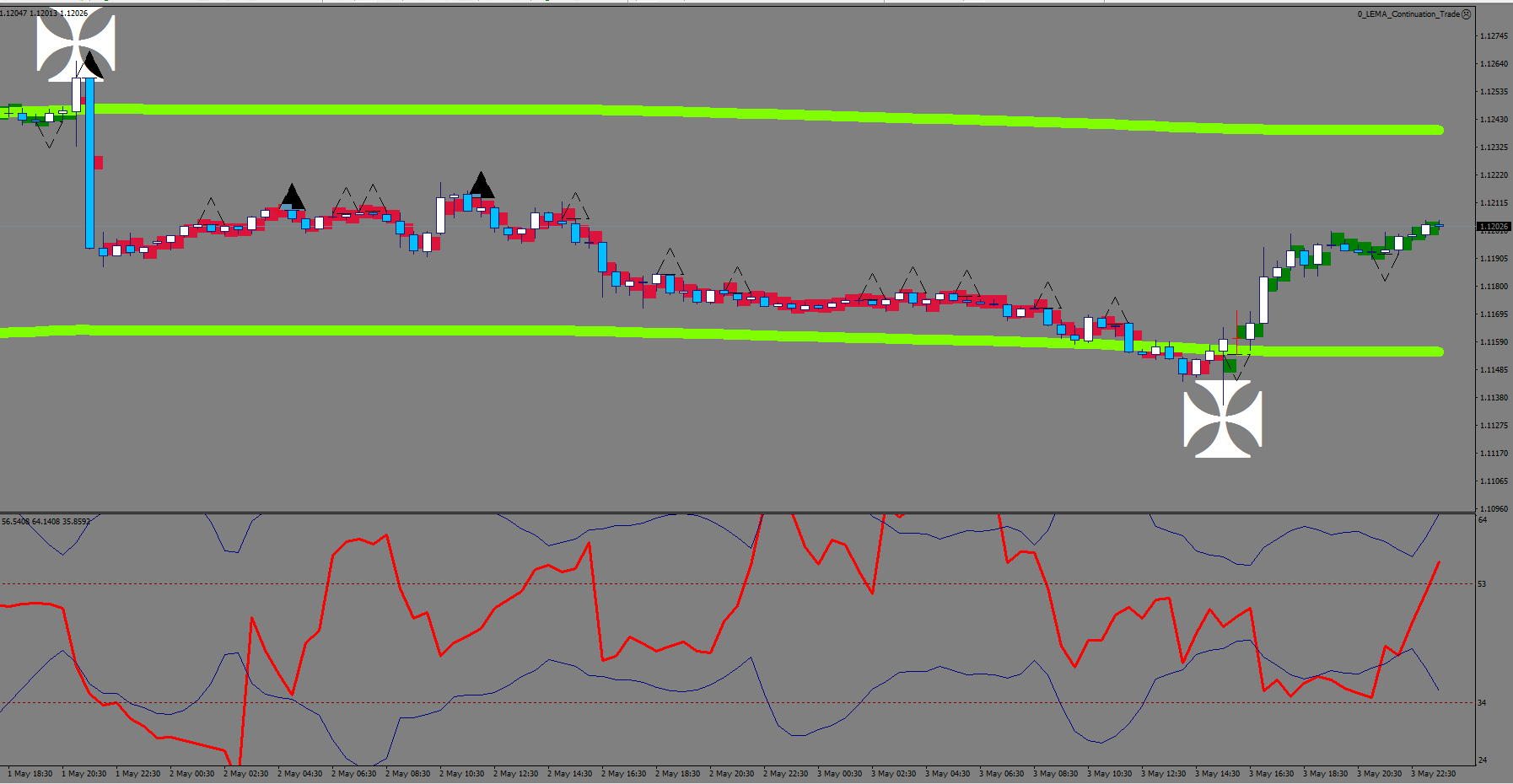 Among the filters I am looking for a wick that is larger than 5.5 pips and an RSI2 sharpie sequence.