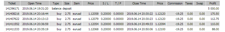 First trade placed: 14/6/19 at 20:13 server time