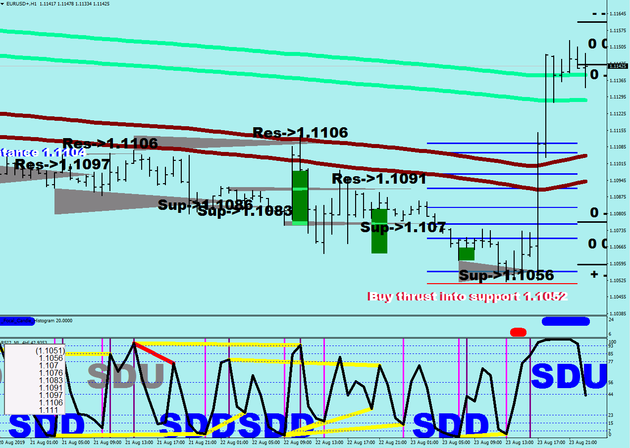 (I actually plugged in the 1.1164 and the 1.1158 as my targets for the longs I opened – but I did not know where the hell to get back in again once was out. Actually, not quite true, I managed to get back in again twice – for some chump change at the 1.1073 level – see the list of supports above.)