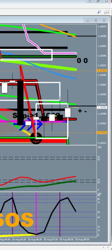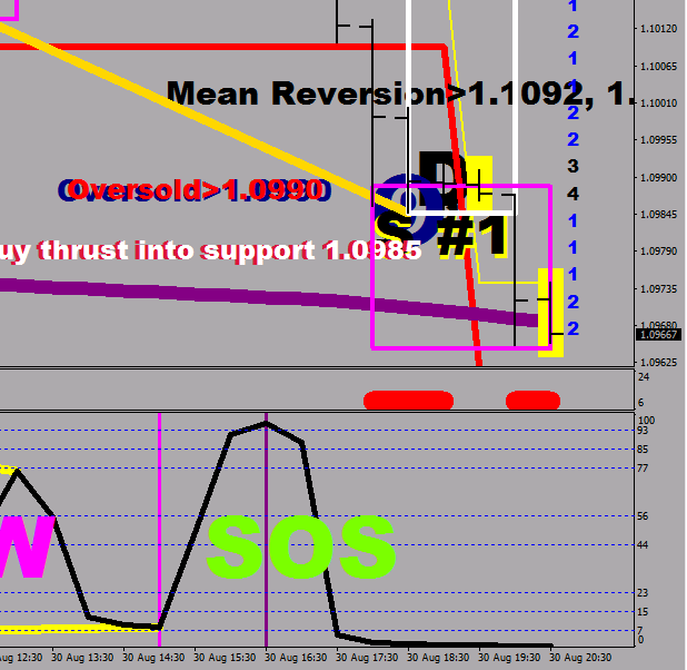 Verdict: counter trend move may be almost here, cover shorts near 1.1037, go long for 2 legs up. Aim for the other side of MR. Maroon at 1.1077