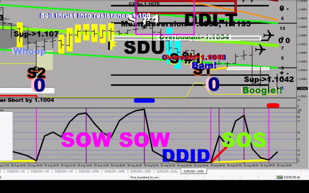 - Is there a valid SOS (Sign Of Strength) / SOW (Sign Of Weakness) in place – meaning from the last RSI2 divergence; an SOS is only valid if it arrives on the first move (whoop), it has to stay on the same side of the 30MA, the disqualified ones, on Bam and on Boogie take on opposite meaning; if there is a valid SOS, look to cover your short below 15 on RSI2 and go long to the other side of the 30MA or to an RSI2 divergence
