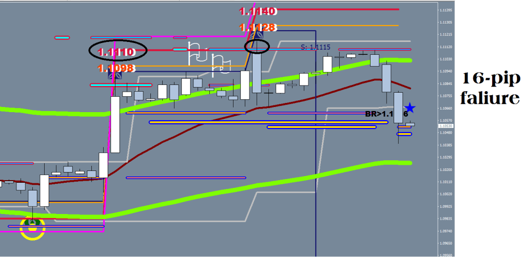 If a sound barrier gets taken out by more than 6 pips, you are looking at the end of a Wave 3 and you can calculate a 16 or 26 pips failure for the end point of Wave 5.