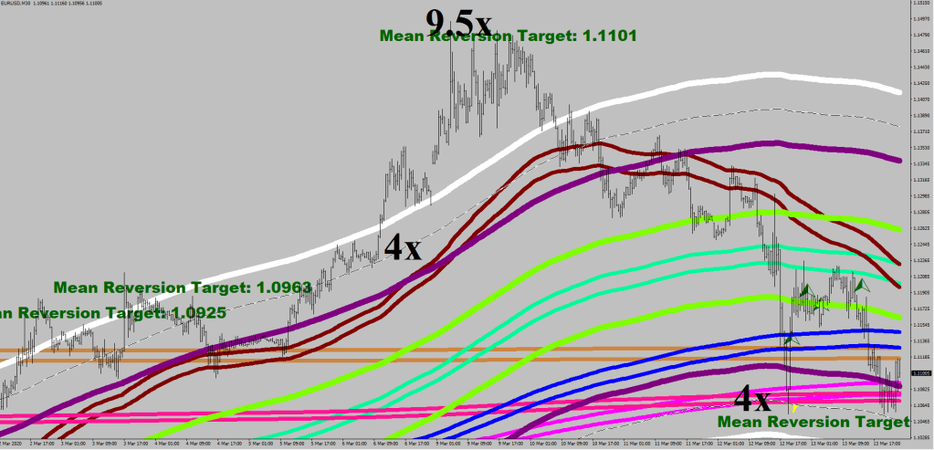 The stretch from the mean itself in a regular market does not exceed a 4x fluctuation maximum multiplier.