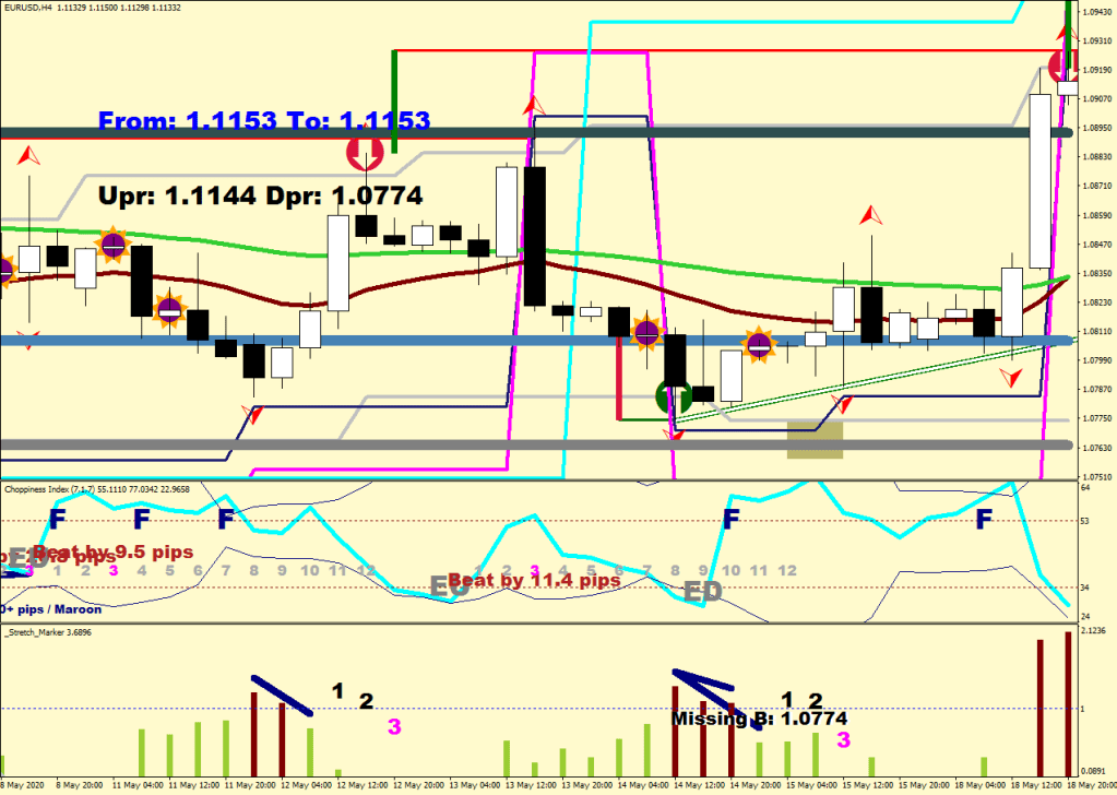For instance, when the 4-H energy gets exhausted, I plot the “sell the beat of / buy the beat of” text as well as EU which stands for Exhaustion Up (Not European Union). The exhaustion level gets surpassed by the little extra distance the commuting mean would provide (inertia). The beat fails the exhaustion level by surpassing then coming back through it.