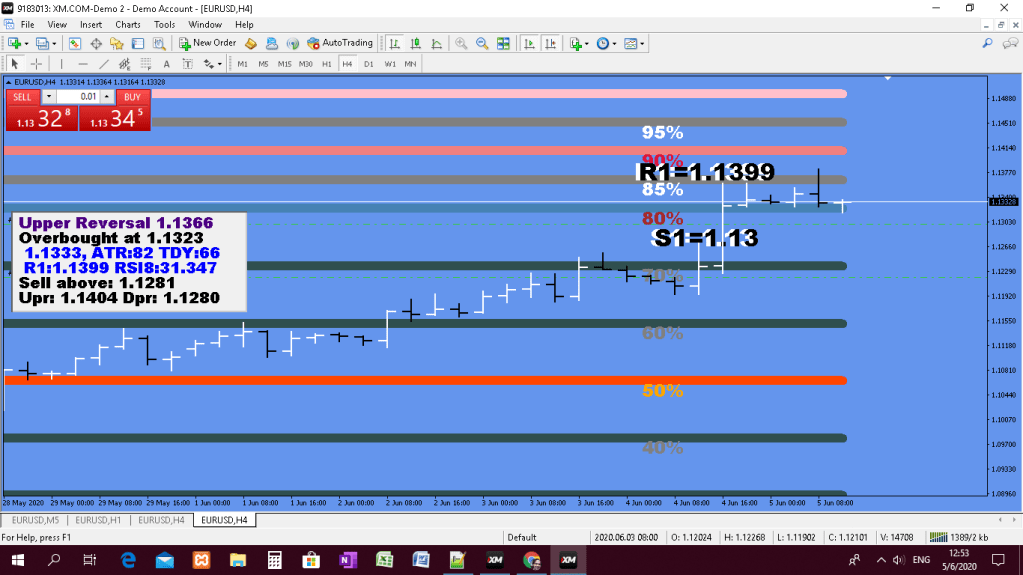 Upper reversal stands for the bottom of the reversal zone (85%-95%) – price is making a turn in the overbought zone in this field. Above 95% odds are a new high, coming back below 85% – odds are losing the overbought status. The largest moves happen out of losing overbought / oversold.