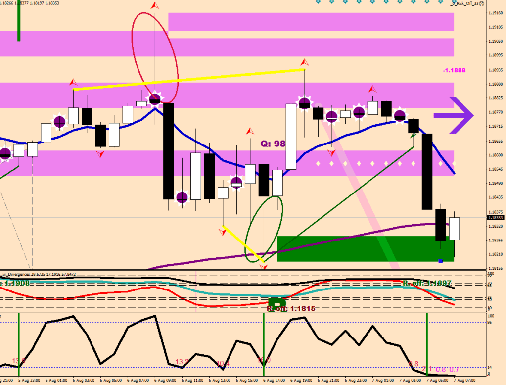 If you look back at the last orange image, we have maximum 2 more hours left from the selling, and the clock is about to roll in 2 minutes. I’m looking to see 2 magenta numbers next – two hourly RSI2 HL2 readings below 16. If this hour ends up being up, we’ll get a fresh count, and so the selling shall continue until it manages to fetch itself a symmetrical ending – or bumps its nose into the overdrive line – darn it, it just did!