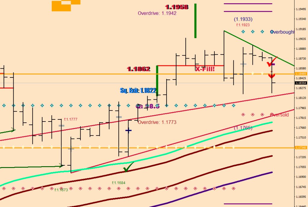 - The new consolidation level of 1.1849 was crossed over down and since this level printed, price never made it to overbought.