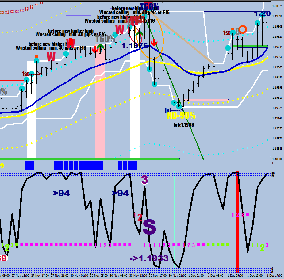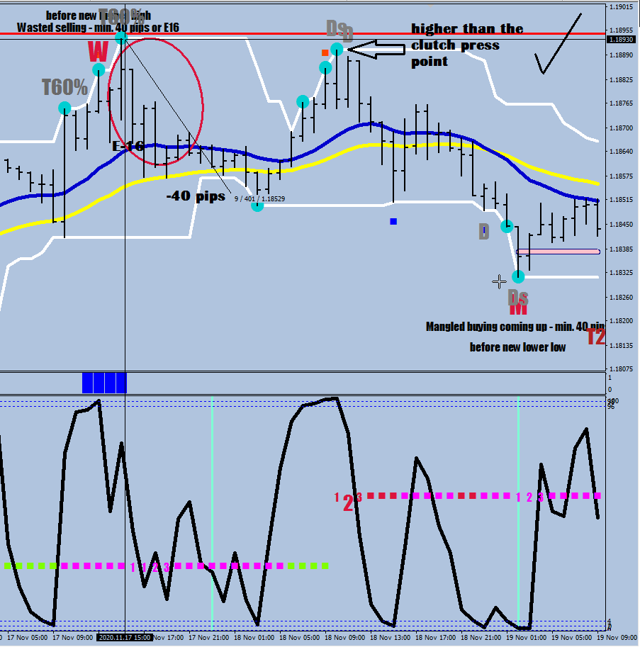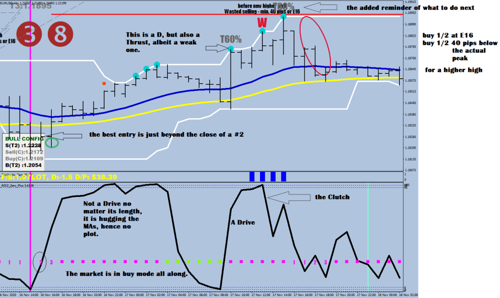 The opposite side is the latest addition. The text plots change based on being in the comfort overbought or not. Here the bulls have the upper hand, so no 40 pips slack, merely E-16 in play.