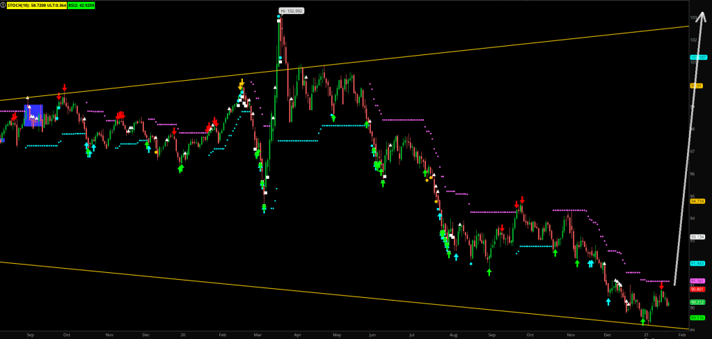 Aim for the safety lines – plug the target code in for the cropper: 0.28 for shorts, 2.8 for longs. With higher conviction you can plug in 0.38 / 3.8 for 10 pips extra. The Channel targets give you a good idea of what is possible / likely.