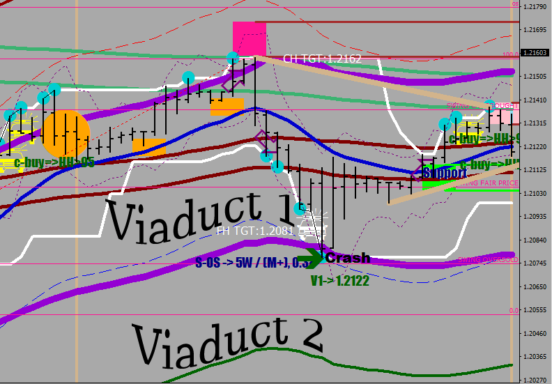 The two kind of crashes are the Viaduct Crash (hitting and reversing off the 45-pips displacement of E16 / 74 pips displacement of E32) out of a not sustainable buying selling and the End of the Line Crash (SSC) out of 3 tries have transpired: no more tries, switch sides.