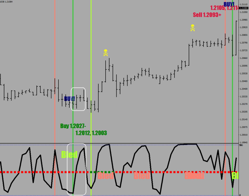 On the example above you can see some recoil on the next candle which is an opportunity to get in on a promising continuation: the bleeding logic gets a null, so a full bleeding + divergence has to occur before the market gets done.