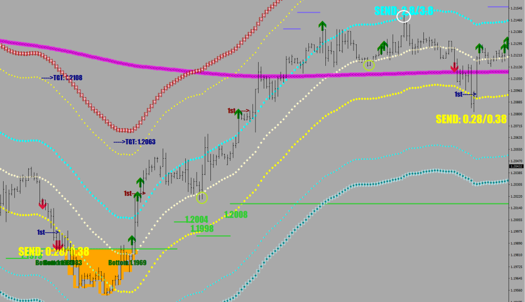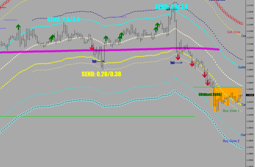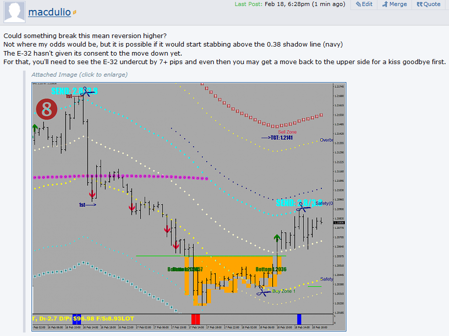 In a sideways market there are send functions playing pong. The shadow lines are 10 pips further, coming in at 38 pips from the E-32.