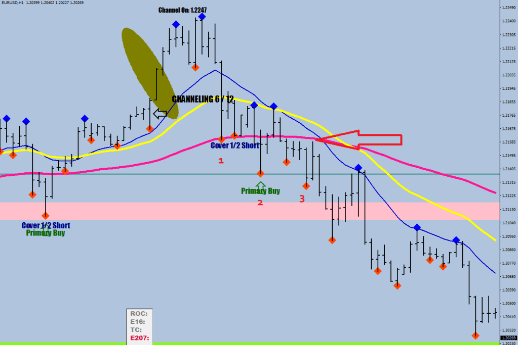 The other way to confirm the channeling move in the prompting direction is when after the 3rd dip price crosses back above E-89.