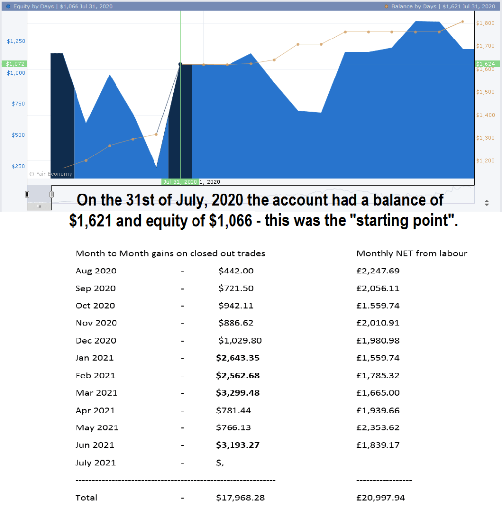 This month should had been my best, yet I fell short from the March peak every which way, when even on balance basis the account was up 980%. I have been treading water since, only adding to the balance and taking on more and more float. The range is not tremendous, all positions have been opened within a 240-pip range, but the nominals, 3.4 lots shorts and 7.15 lots of longs are uncomfortable a bit for now. Main reason? The damned swap on the longs.