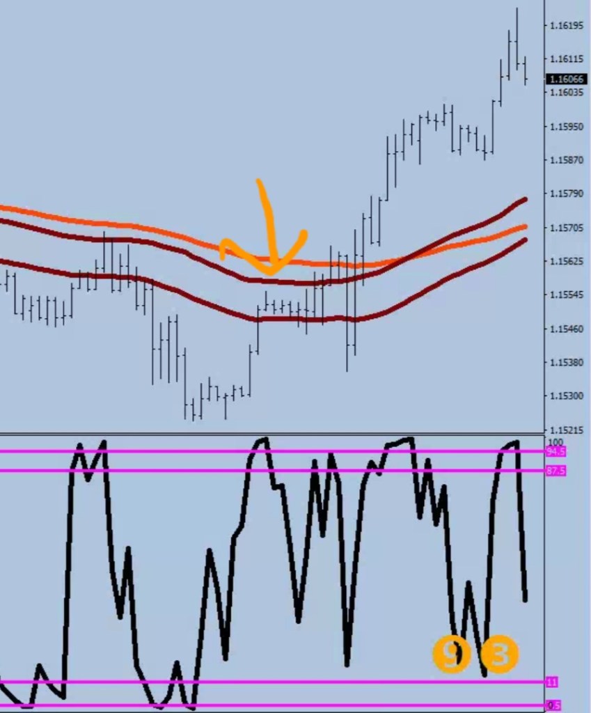 w1 buys the right for a wave structure by scoring beyond the closer end of the E-67 band; it normally arrives with directional volatility, i.e. the hourly fractal to fractal travel length exceeds 28 pips; relative to the consolidation level it usually peters out 20 pips shy of the 3-day ATR