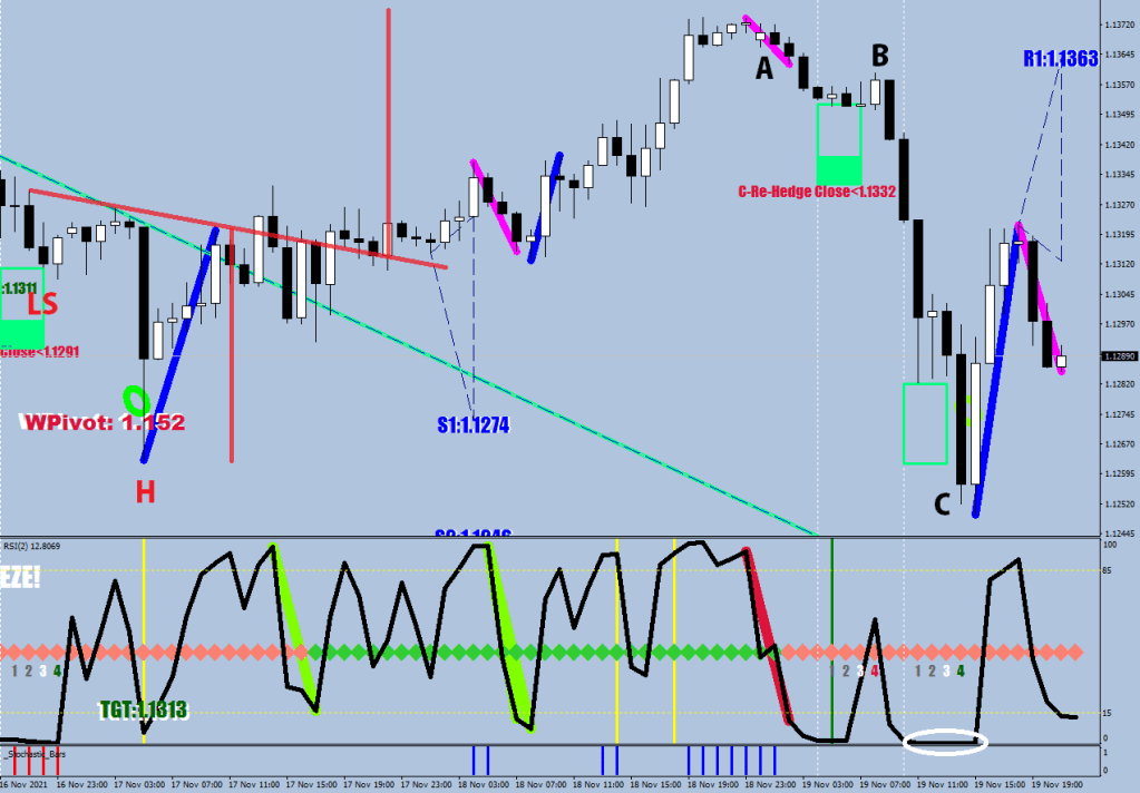 I don’t want to bore you with the details of how problematic a full hedge is and what it is like having to improvise when you realize that your train of thought is being derailed real time (remote computer operated by cell phone muting hedgers whilst auto trading still runs to secure the execution of the trail stops for the pending spike low – constantly re-fitting codes for positions that are being threatened & taking profits with extreme care avoiding margin issues – all during working someplace). A saga of 11.2 naked lots and all the stupid bias you can collect on YouTube etc.