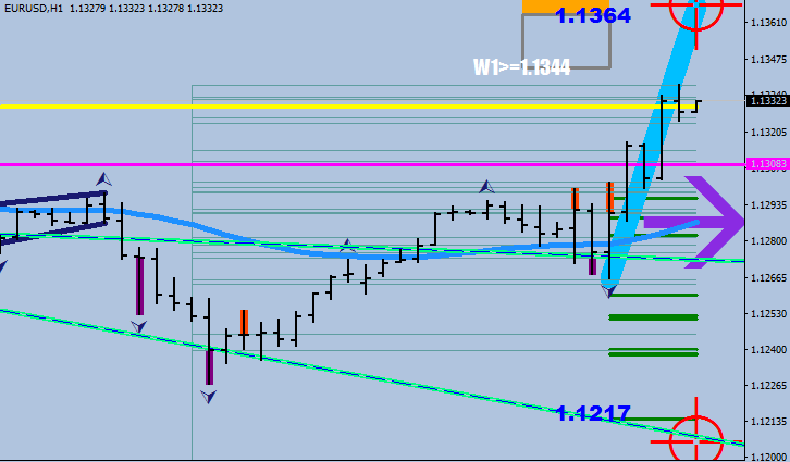 You see the price struggling at 1.13, you look at the indicator that shows a 1.1344-1.1364 for a Wave 1 as prospect and so you don’t start shorting immediately.