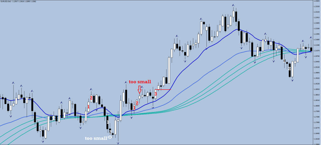 For the switch between the markets let’s introduce the term, constructive closes. These are candles oriented in the direction of the switch with visible bodies. Open & Close both above / below E-16.