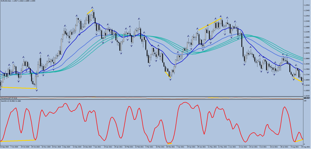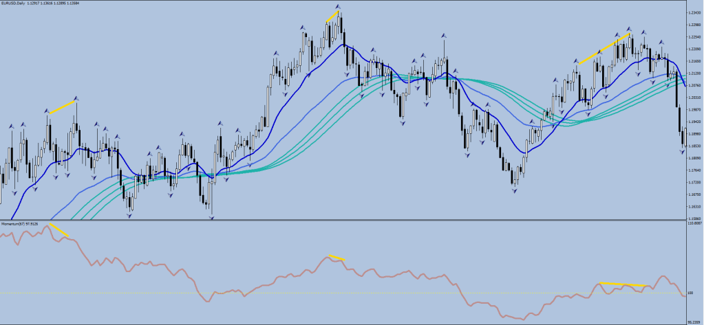 Use 67-sample momentum to spot a reversal divergence on the upside and 9-sample Stochastic D for a reversal divergence on the downside.