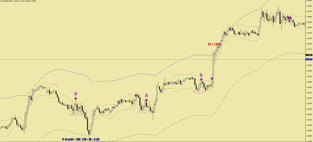 The below example is a no-volatility correction that happens during a channeling move, it has 3+ S= Shy of oversold lows and 3 B moves back above 50. Akin to a 3M low print, this is a valid terminal utilizable for a long entry. Take note of the price avoiding to touch the E-16.