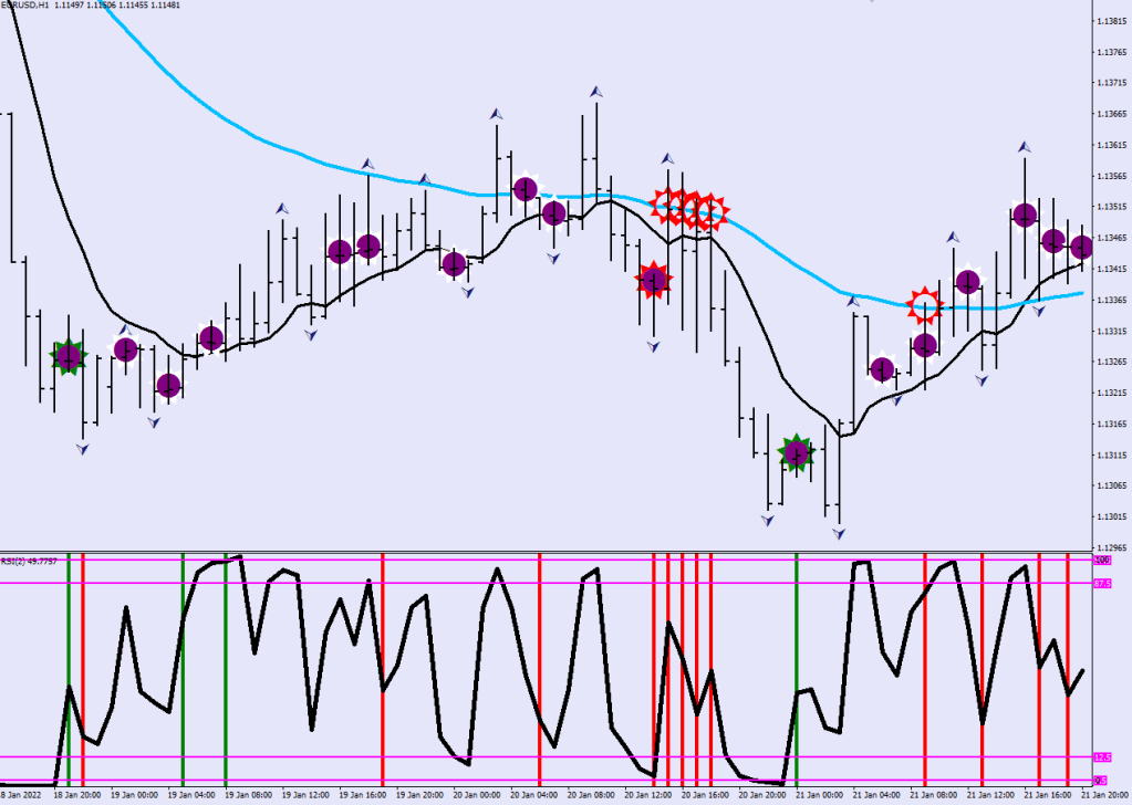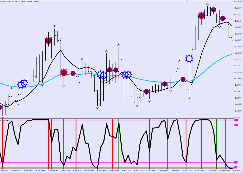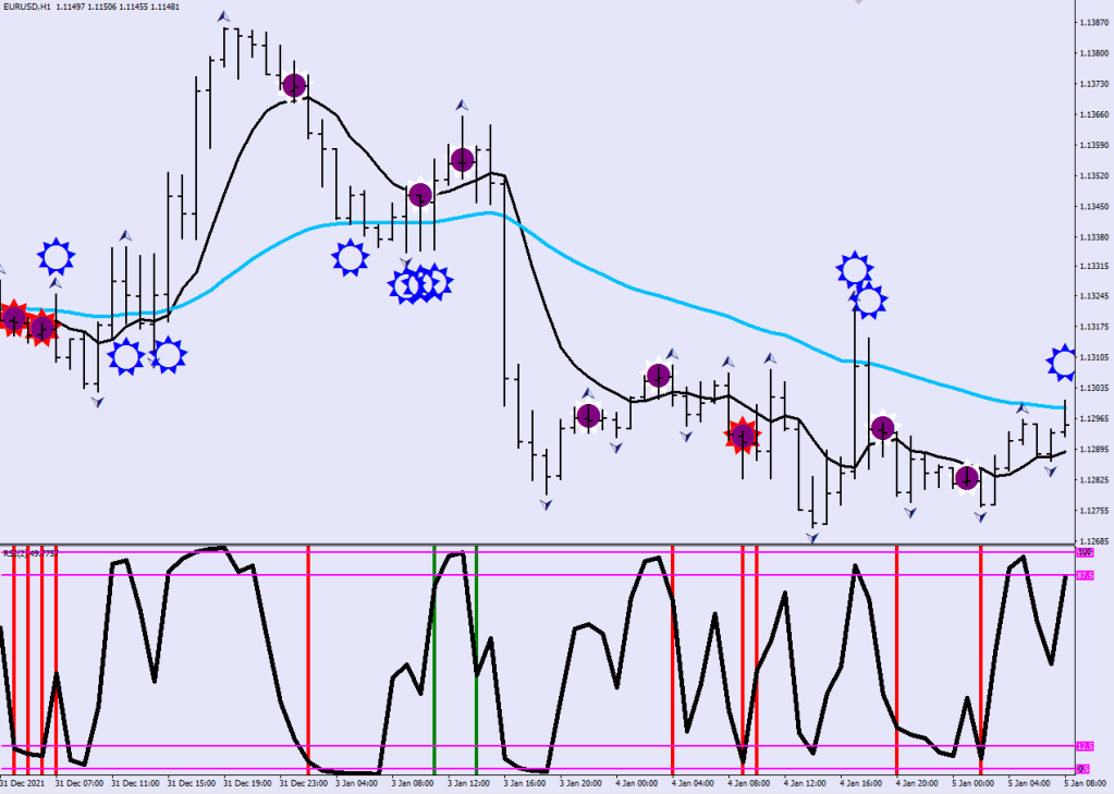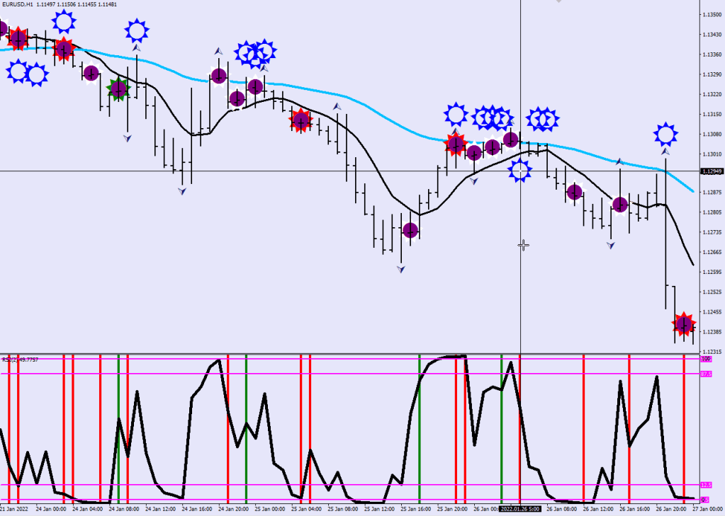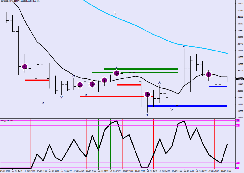 Thirdly, the interaction results with the E-44 are the blue halos (nojis). They are highlights for potential break-out areas / they suggest stop / stop loss placement nearby. It was just an idea.