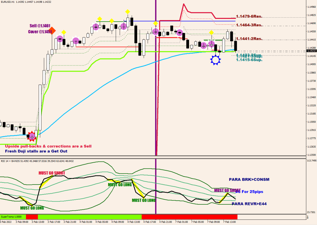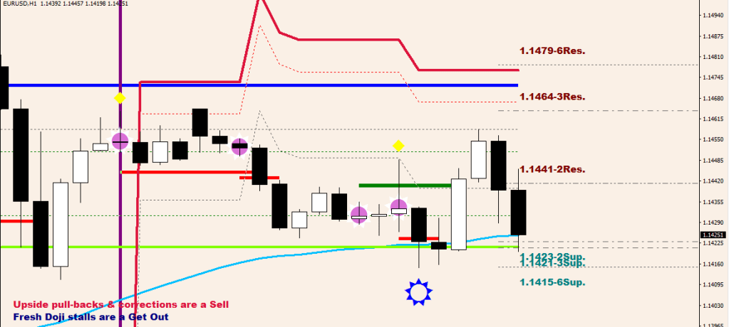 Dojis. Shared the basic version on ForexFactory. The routine now plots the last 2, 3 and 6-doji ranges with increasing displacement as supports and resistances on the right margin with the numbers plotted. It also makes the thick blue, red and green lines depending on if the market has managed to close beyond that particular line for an idea of fake outs / current progression.