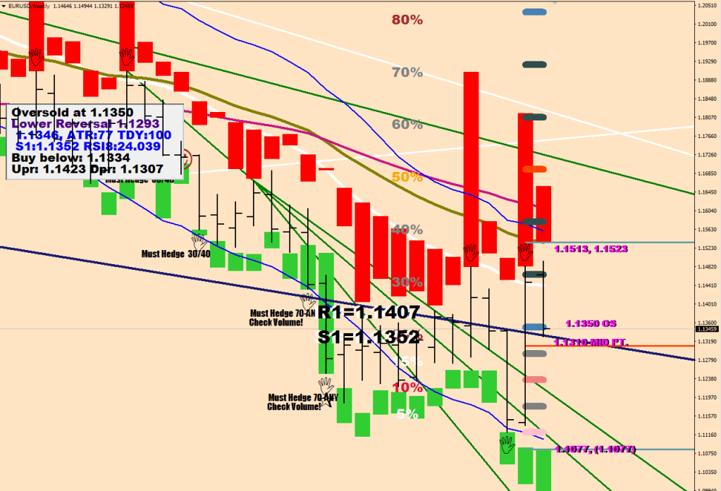 Re-vitalizing the comfort levels helps you to understand that this dip into the oversold (blue marker) is a back test of the oversold and the time spent down there would likely be limited both in time and in distance. A right shoulder matching the left shoulders depth would be at 1.1182 or so, but there is no sacred script stating where the down move would have to be bought.