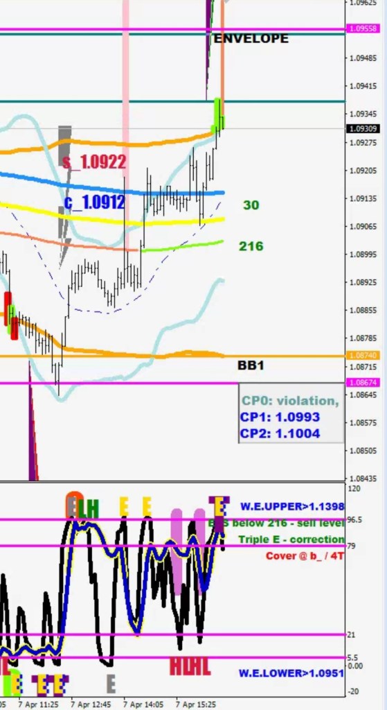 Yet again, the post partum image shows price and the Daily Bollinger to have met, nevertheless, price only got within 10 pips of it when it was charging, but now the Band is reeled back into the price’s field.