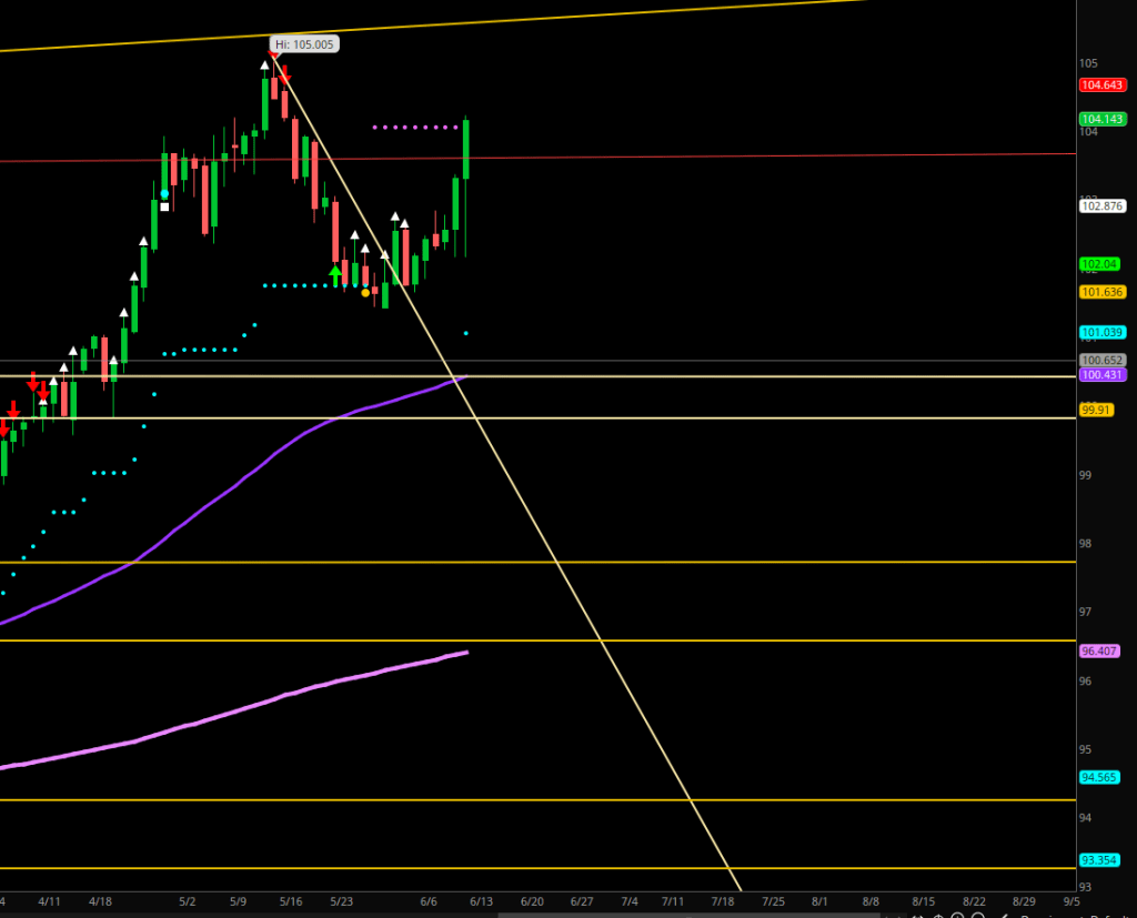 The bias is the relationship to the daily 20 SMA and the 20 SMA of the 44 EMA.