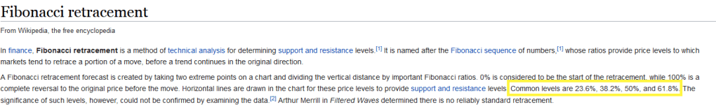 Just that we are on the same page, here’s the Wikipedia Fibonacci entry that is wrongly listing 50% as a Fibonacci number and is saying nothing about 85.4 for instance.