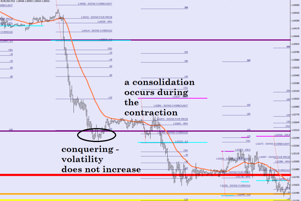 A conquering is 5+hours closing on the other side of the line and volatility is on the decline (contraction)