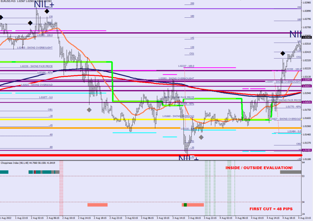 This new, vertical lines plot is a “confirmation” of a move being in place: must get in on the new direction now, and the sophistication is the scaling in size part. Say the 15-minute candle’s low was X when the red line printed. Now we should see very limited counter-directional volatility. Place a sell 10-pips above the low and add more at 15, 20 pips. Keep in mind, there may not be much beyond 10-pips, so the initial size should already be a full hedge if you have holdings.