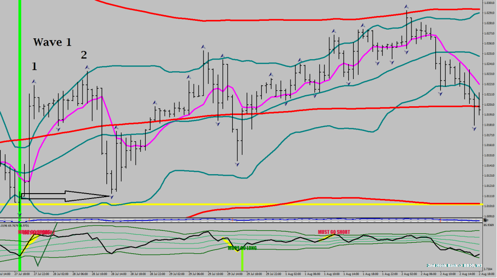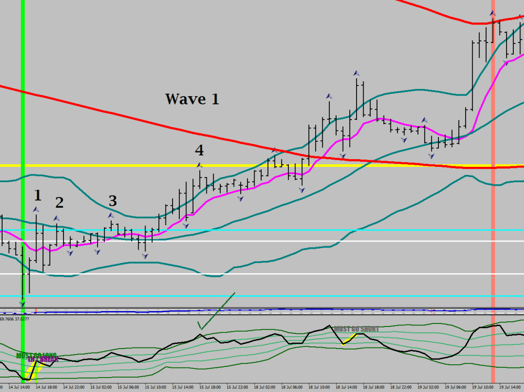 If only one or none of the criteria happens, the Wave 1 attempt is considered a failure, price has to return to the Opening / Closing price of the last Thrust, form where a new Wave 1 attempt can be conducted.