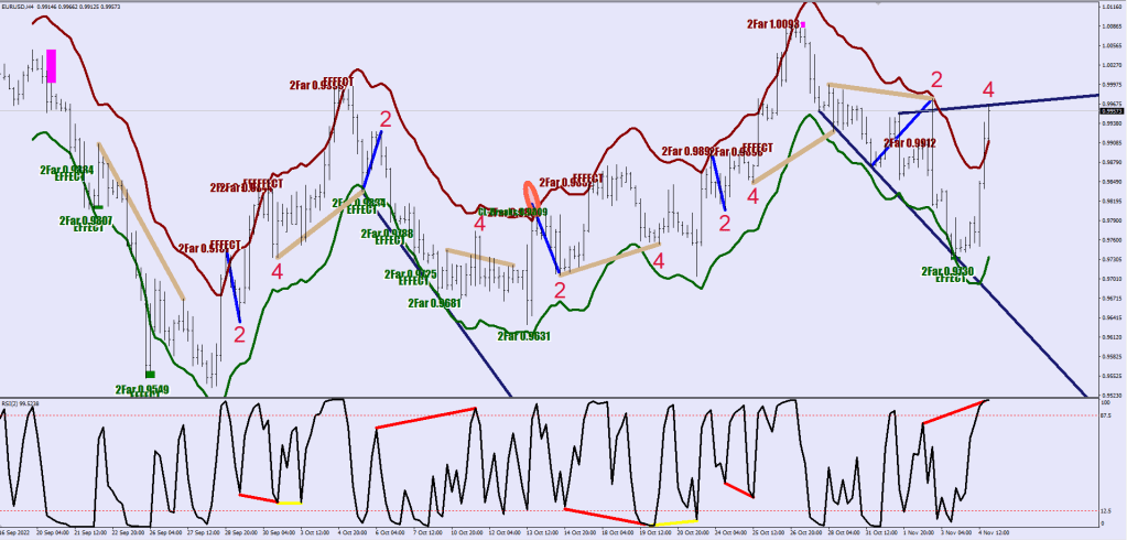Normally it would be like, decisive move, market staying overbought / oversold and no bow back beyond 32 pips – see the fractal to fractal move right after the RedOrange shaded part.