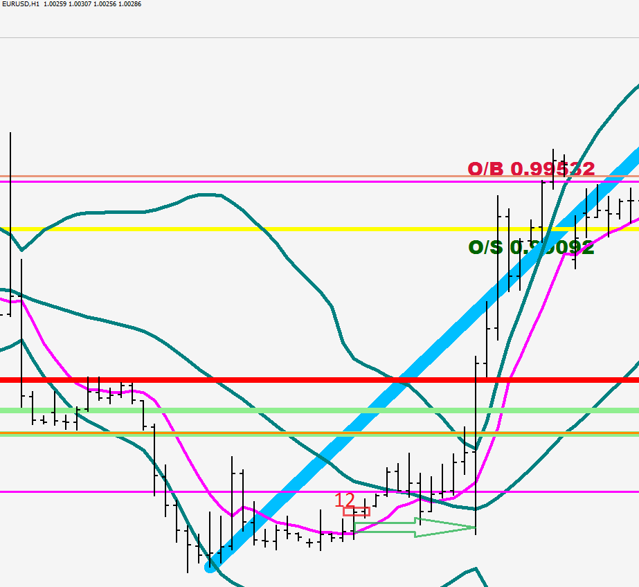 After 2 consecutive closes on the other side of the 8-EMO, the buy level (short cover) presented itself as 10 pips lower than the second hourly close over.