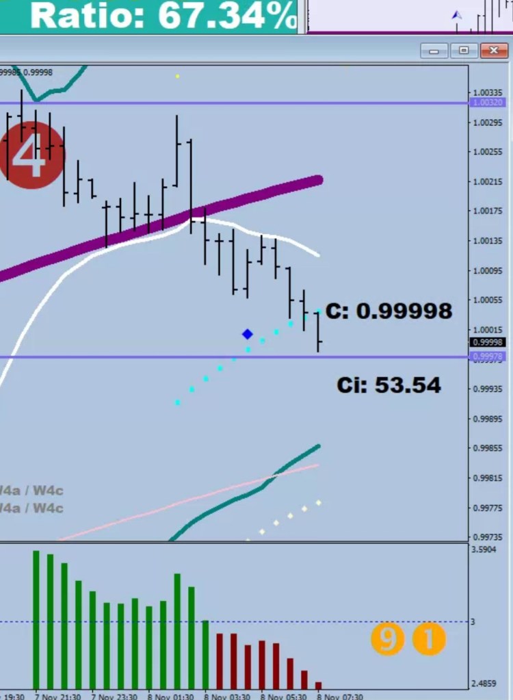 We need to see something similar happen for the cover level to show itself as this second example. 2 closes below the 8-EMO and 10 pips above the second close is the get out of long / go short level.