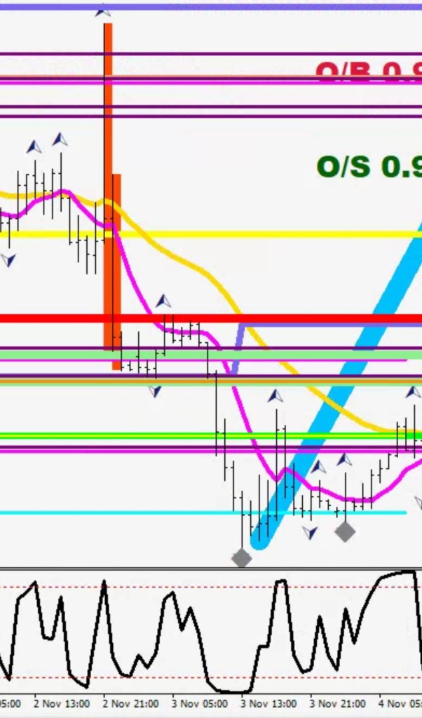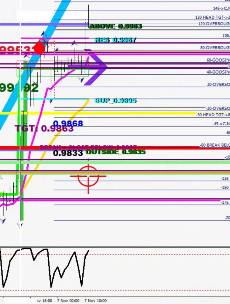 Thesis: after a decisive move you’ll see one or more addotional legs until the last swing distance exceeds 95 pips (plus a No Break Extension – extra 40 pips may or may not be in the cards). This would represent the finishing wave structure, quasi the decisive move kick starts a terminal Wave structure that ends up culminating in a capitulation. Gaps are signs of impulse waves.